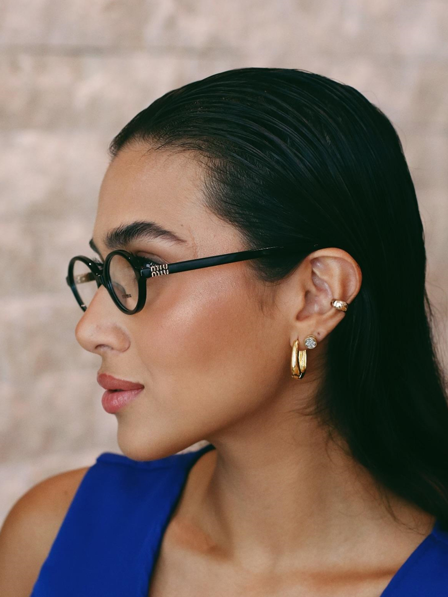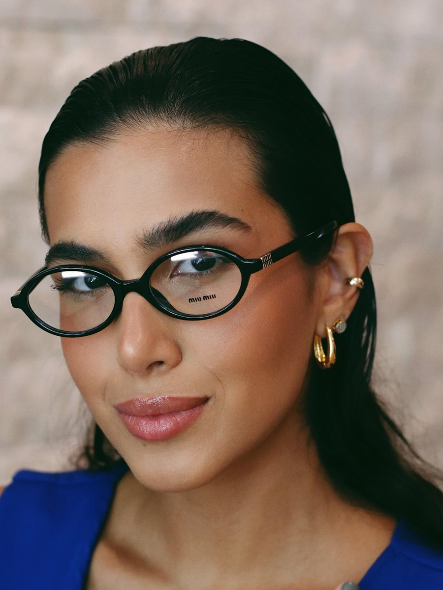 Direto do desfile FW23, este design de grau de formato oval foi um acessório essencial na passarela. O logo Miu Miu vertical é uma parte estilosa da articulação, trazendo uma marca brilhante porém sutil às hastes de acetato. O logo Miu Miu vertical nas hastes é tanto um detalhe estiloso quanto uma articulação funcional.