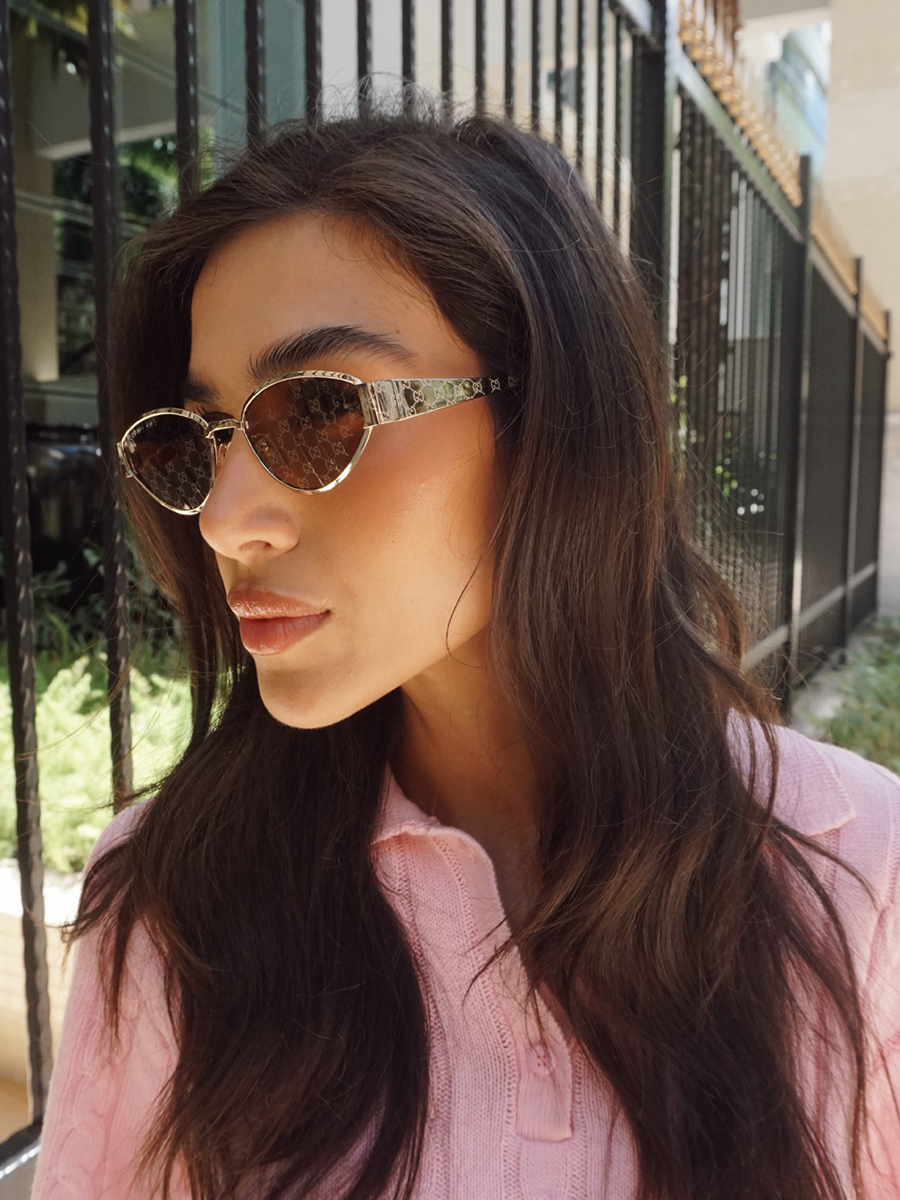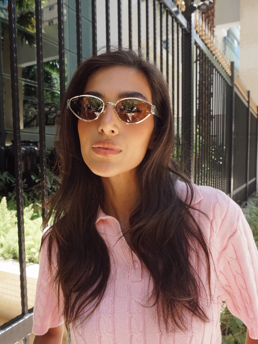 COR DA LENTE: MARROM E LOGOMANIA GG NAS LENTES