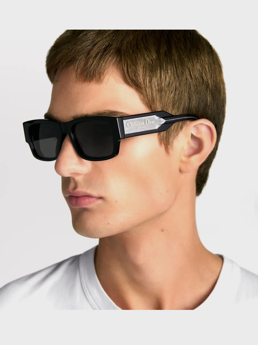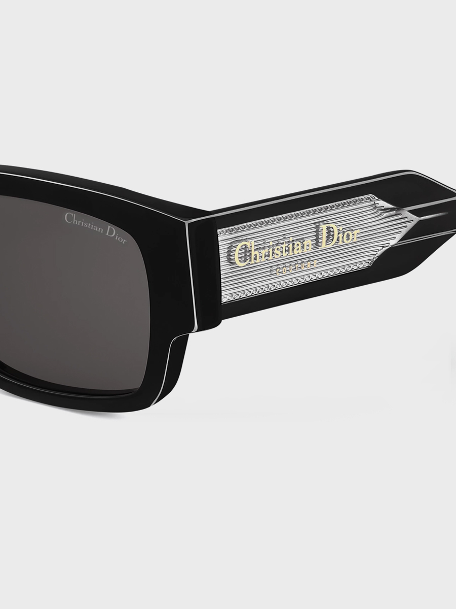 Os óculos de sol Christian Dior Label S1I apresentam um formato retangular com uma estética distinta. A armação de acetato preto é complementada por hastes pretas e de cristal com efeito de camada dupla. Adornados com a icônica assinatura Christian Dior Couture em tom prata, eles são realçados por chanfros que criam uma interação dinâmica de volume e a ilusão de uma etiqueta. Lentes cinzas com a assinatura Christian Dior na lente esquerda dão o toque final ao estilo contemporâneo.