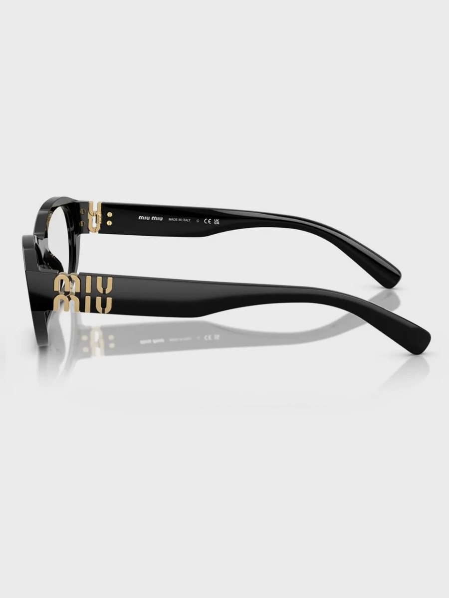 Incorporando a fusão de ousadia e elegância característica da Miu Miu, este design de óculos de grau exibe volumes impressionantes. A armação de acetato é adornada com a marca em metal, apresentando um logotipo vertical que funciona como dobradiça graças ao mecanismo intrincado das iniciais, agregando apelo estético e utilidade prática.